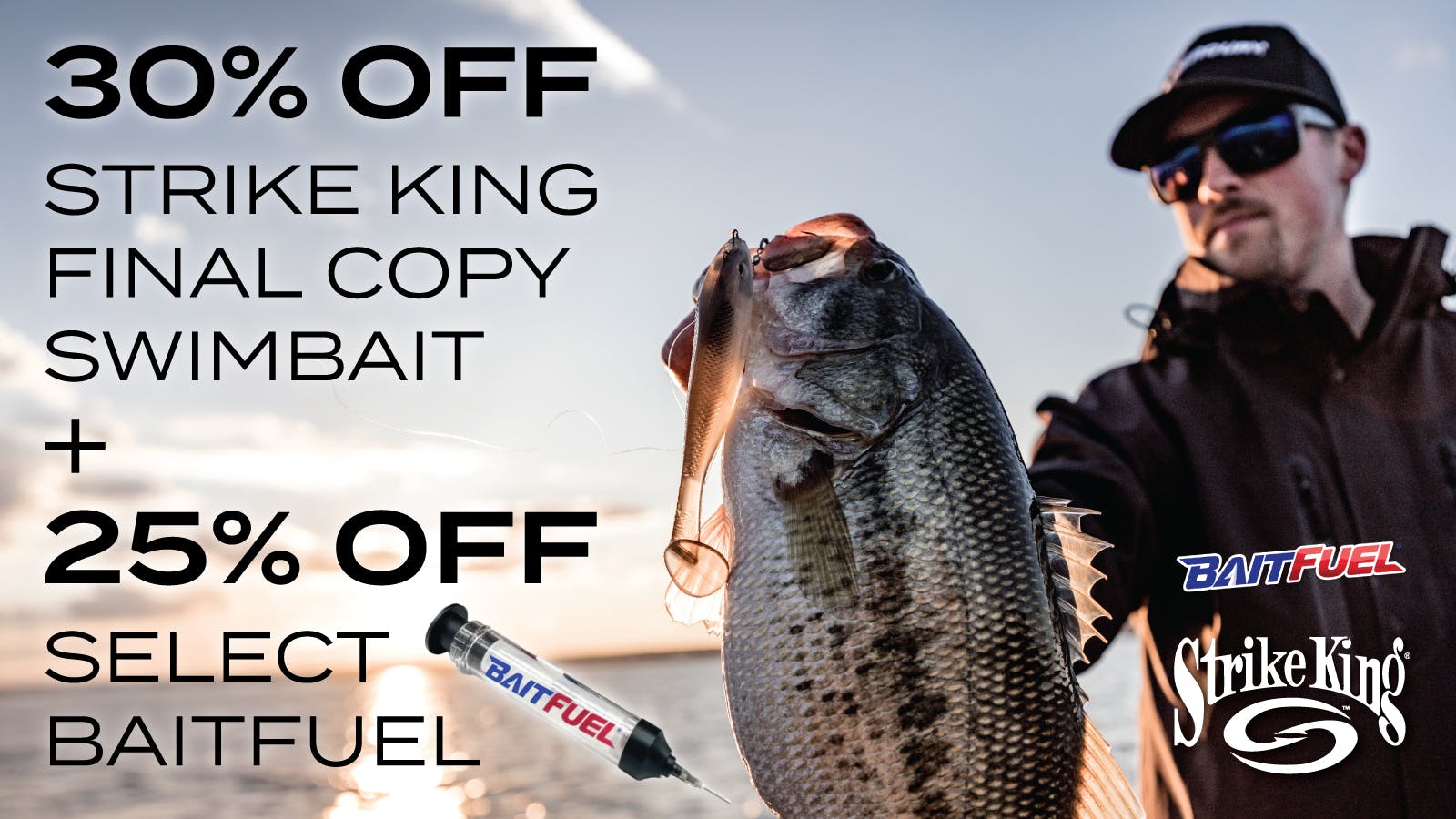 Score 30% Off Strike King Final Copy Swimbait plus 25% Off BaitFuel Freshwater Injector Kit and Refill Kit. Stock up on proven performance baits and fuel your confidence with bite-boosting scent innovation.