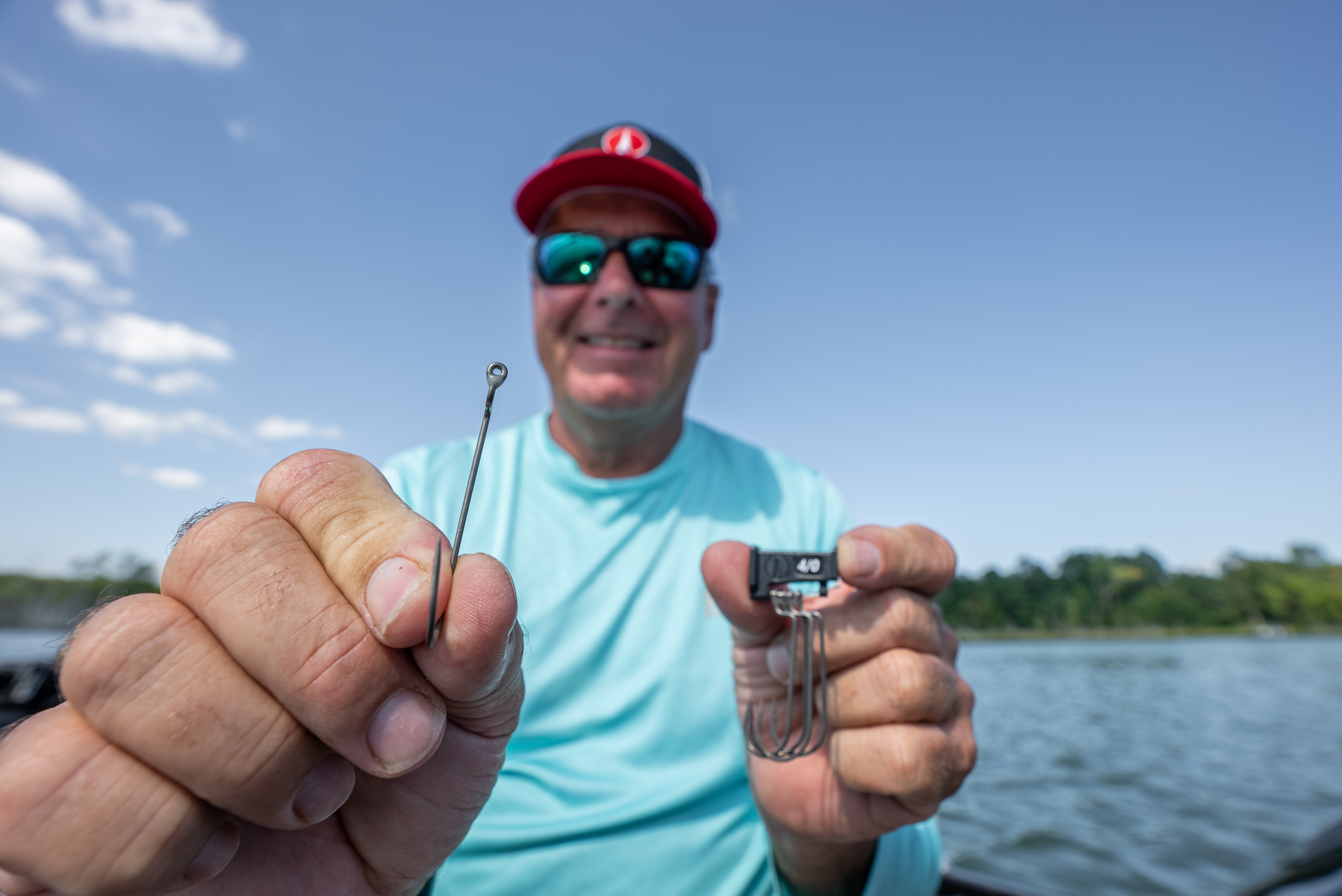 Since Bob fishes a Texas Rigged Worm on baitcasting setup, he looks for a hook with a thick gauge wire. “Fishing a worm on heavy gear and thick line means the hook needs to hold up during a hard hookset, having a thicker gauge wire keeps the hook from flexing during moments of stress.”