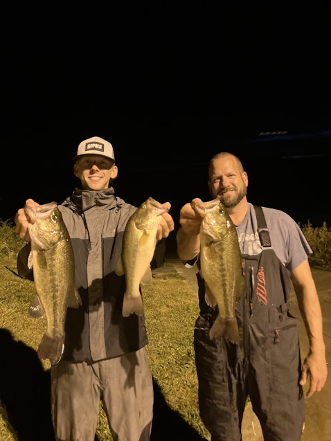 Throw a wacky rigged Senko around submerged grass, especially around docks. The docks and grass together were the key to the bigger fish. Also caught a few smaller fish on a jerkbait