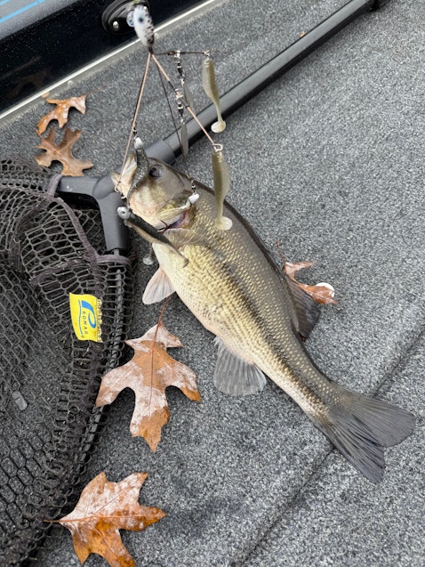 Worked deep brushpiles, creek arms, and rocky banks with the micro flex umbrella rig. Caught many spots and largies 2 pounds and under.