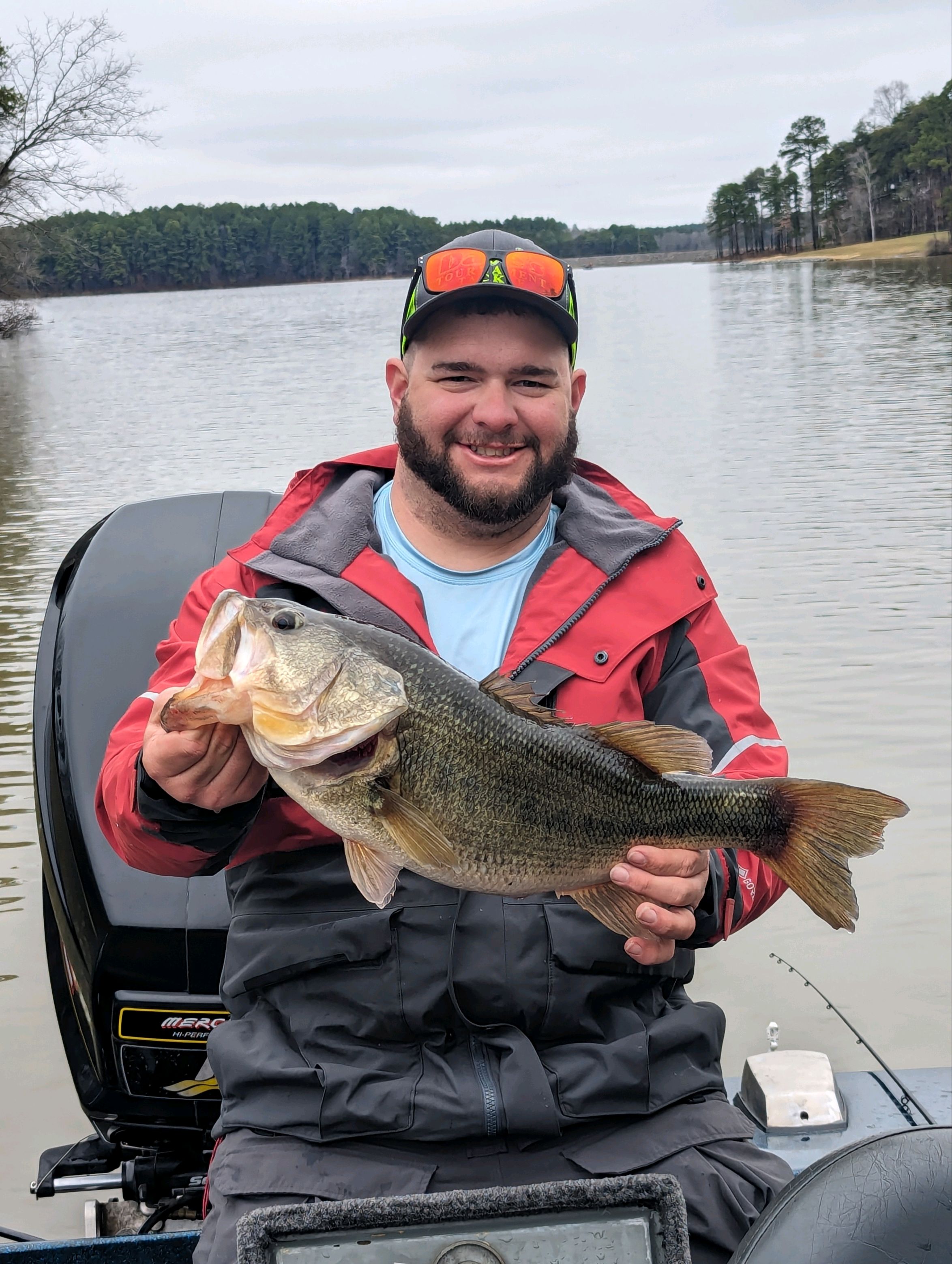 North winds had been hammering creek arms the entire week before creating much needed current. I targeted docks in the wind with a square bill, then back side (wind protected side) of points with a chatter bait. This pattern produced a 7.37lb bass (pictured) on the crank bait. Also, finished 2nd in a local tournament. Did most damage early morning but as the front broke and sun peaked out I had to switch over to a wacky rig.