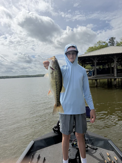 Tough day overall but found some fish on a Lay Lake pre-practicing for a highschool tournament next weekend. We fished most of the day on the south end of the lake and only caught two bass in about 5 hours. Both came on a shakey head on docks. For the last couple hours we went way up river. We found a creek that was loaded with bait and bass and started catching fish with a swimbait and a minnow.