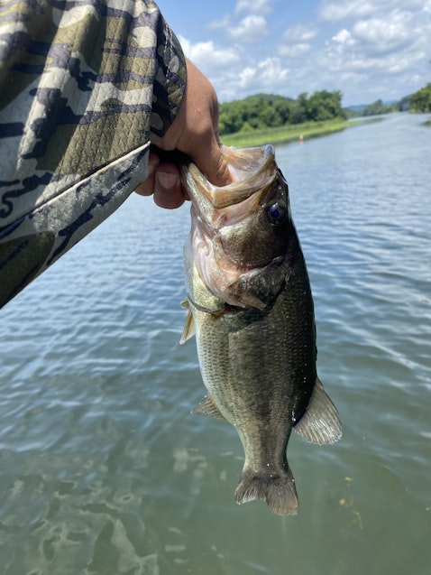Caught a largemouth around brush on the karashi early in the morning. Then found a group of spots schooling in the middle of a small creek channel over a brush pile would catch them on a drop shot then would throw a walking bait and karashi when they broke the surface. They would rise in the water column when the wind picked up.