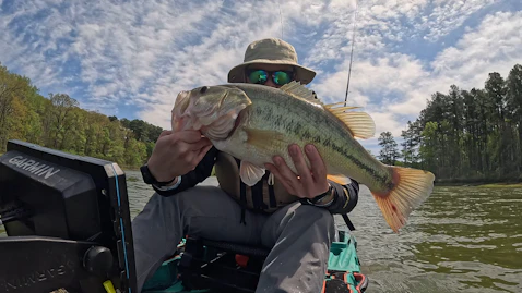 Fishing kayak tournament on nickajack. I had given up on this bait last Fall after having no luck with it thought i would give it another try since I was having any luck with any of the crush city minnow style baits skipped it in the front half of the dock and this little guy nailed it. Unfortunately it was my only fish wasn’t able to hook up with anymore keepers found a massive school of bass with Mega Live 2 on a shallow flat that gradually sloped to the main channel right at the end.