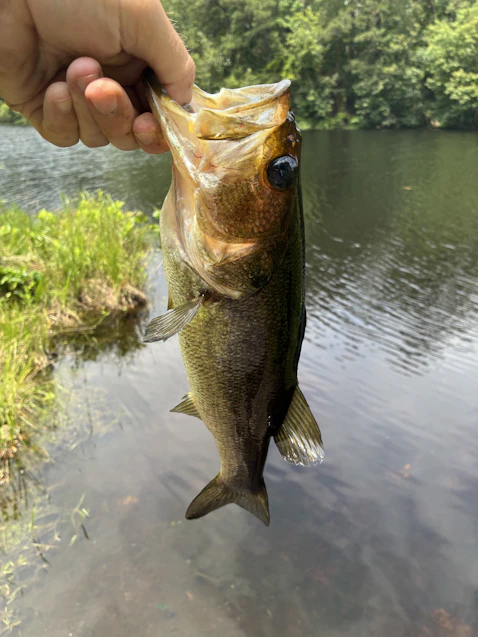 Lots of pressure and most of the perimeter is covered with thick hydrilla. Got several big bites off of a texas rig with the Rapala Crush City Bronco Bug and the 6th Sense Vega Frog Gill Fest.