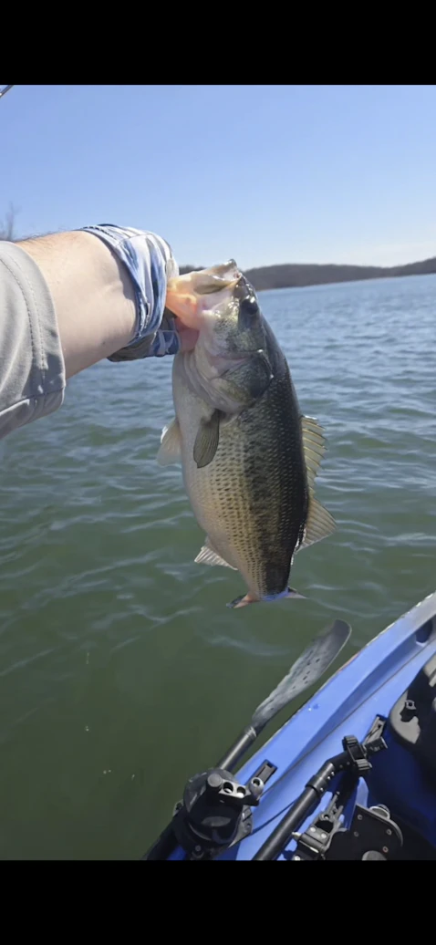 A slight warming trend led into a windy day in the low 50°s. Wind was out if the south east at around 15-20mph. I first found 13-15" fish close to some wind blow flat rocky banks with a jerkbait. After the bite slowed I changed to a ned rig and caught a few more out of the area. After catching around 10-15 bass I moved on looking for better quality. The best size came after finding schools of crappie on my down and size imaging. I could see bass on the edges. I was able to follow the drop off and picked off around 20 fish. Highlighted by a pair of 5lbers.