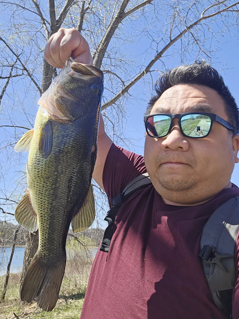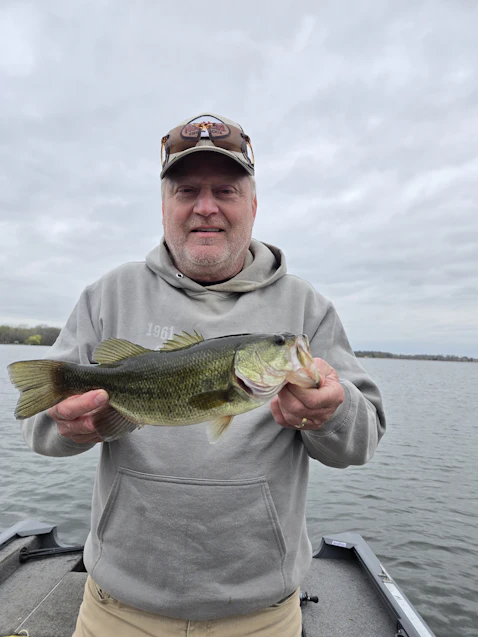 This was an amazing outing! Fished about 3.5 hours this afternoon/evening. This outing was for April 16, 2026. The air temp was warm, close to 80 degrees and windy out of the south. Water temps were in the high 50's up to 61.5 in spawning areas. Bass were up shallow and the fatties were feeding! I caught about 16 bass, my buddy caught around 8. It was on! This was our double, but my buddy caught his PB at 5.4lb, and we had another couple around there. I was throwing a 3/8 oz jig on straight braid to help with the feel as it was so windy. It helped for sure!