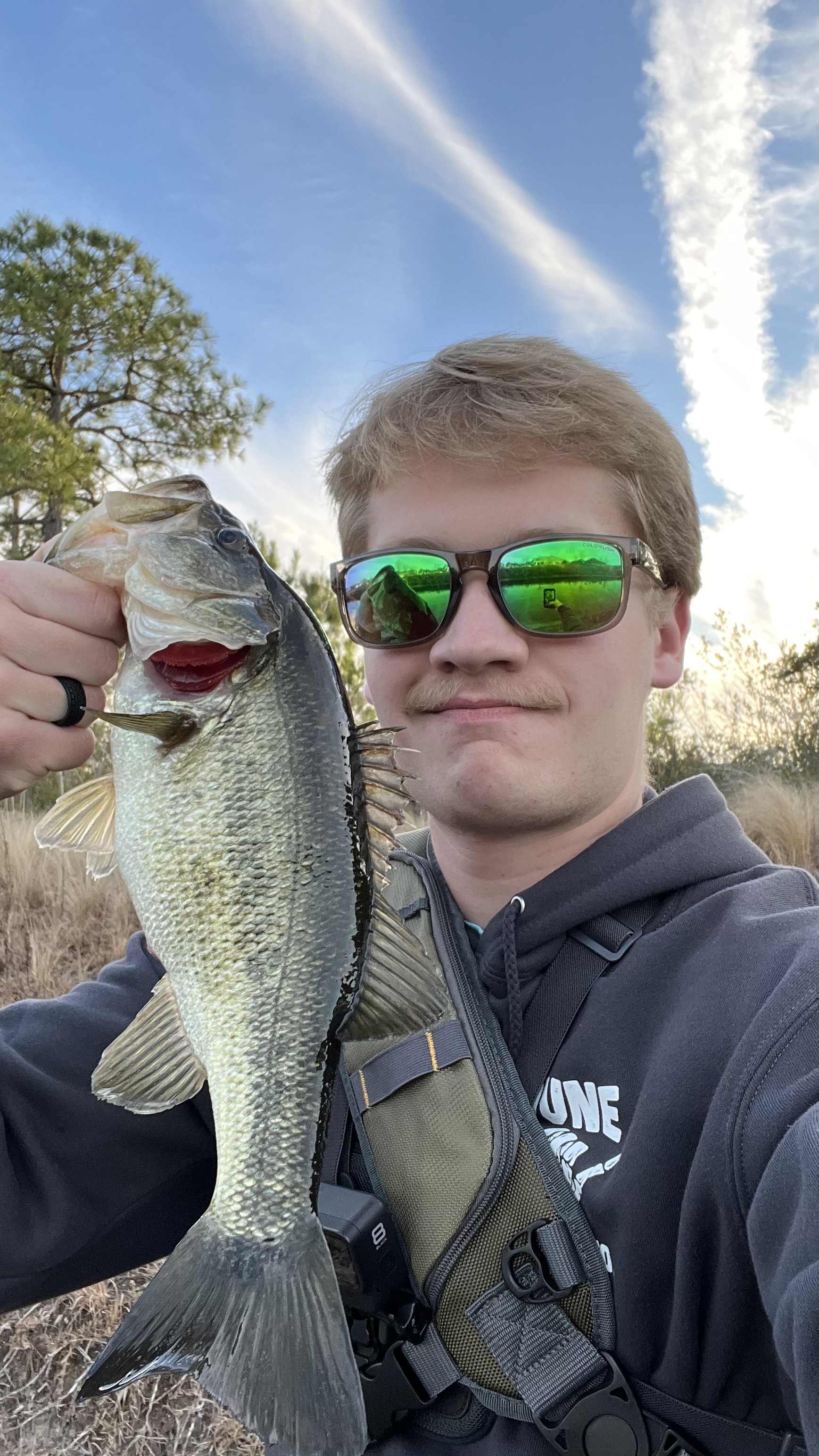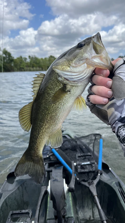 Caught 5 today, they were so small I didn’t bother getting a picture, caught those on a wacky rig. Tied on the rattle trap and trolled it behind the kayak on the way back to the boat ramp and caught this guy. 1.5 pounder or so, out on Lake Sutton NC.