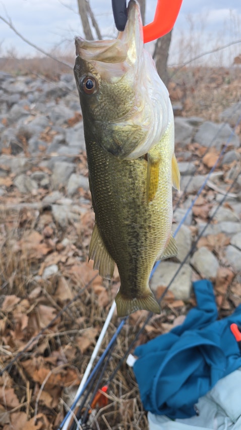 The water was high and muddy but had a warm day. Got to fish for a couple hours and caught two. One on a jerkbait and one on a crankbait. They were both on flats close to drops.