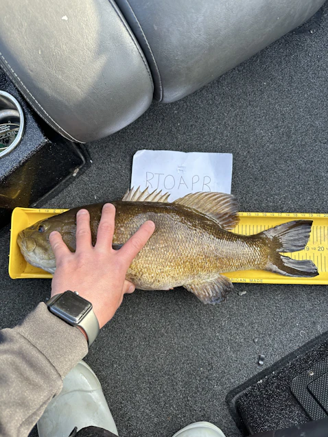 All fish came off rock piles or wood, slow rolling with hops. Cover water, anything north facing had up to 65 degree water and more fish