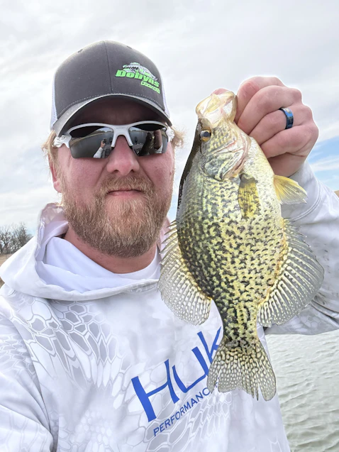 Keeping it 2-3 ft from the top was key above there heads and rolling hard 12-13.5 crapppie in schools of 30-40 around holders