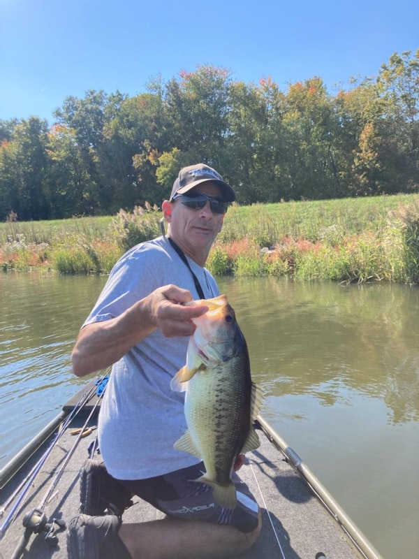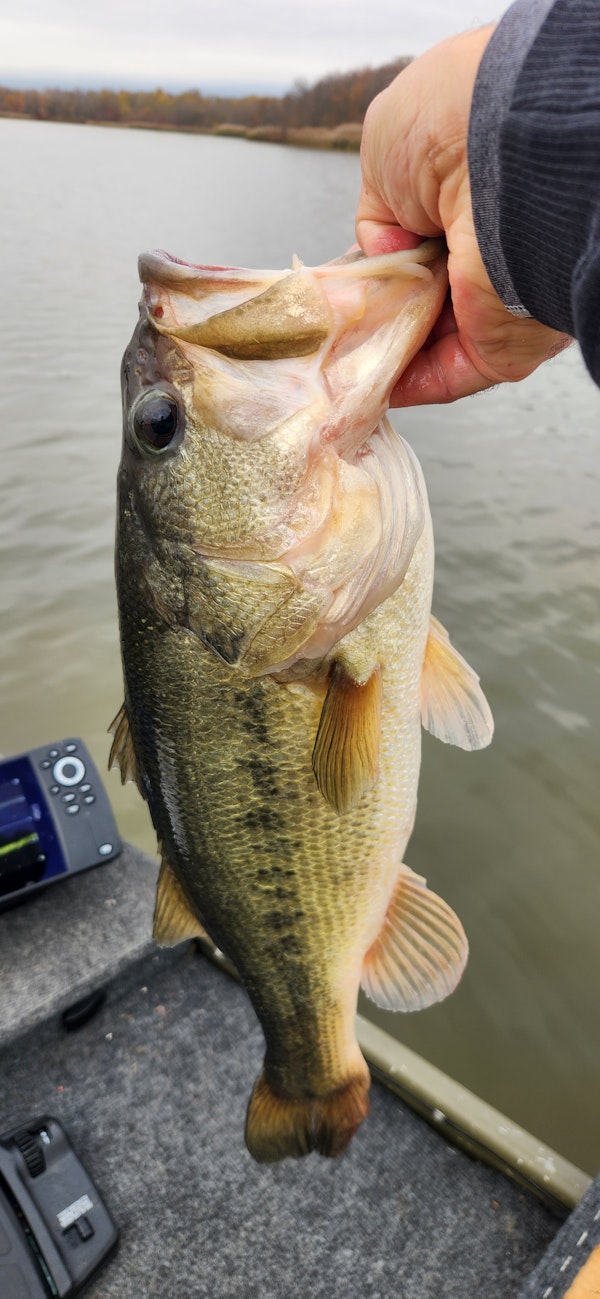 Largemouth BassTechniqueLipless CrankbaitsSeasonFallStructureSubmerged VegetationChucking and winding yielded this nice 4 lb largie.