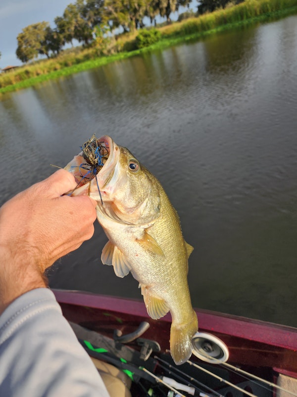 Largemouth BassTechniqueStructure JigsSeasonSpring (Post-Spawn)StructurePointsI found a school of fish feeding on shad out of a point. Dragging a Dirty Jigs Casting Jig was the trick. Black and blue was choice of color.
