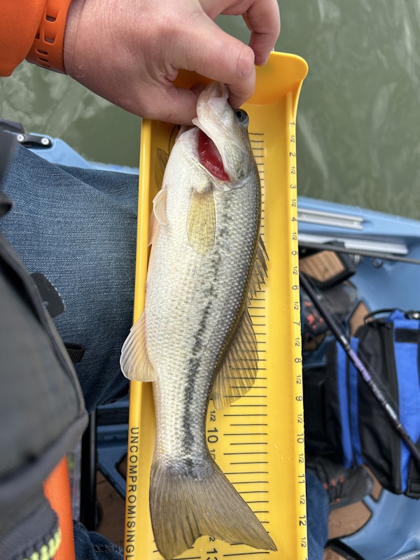 Largemouth BassTechniqueBlade BaitsSeasonSpring (Pre-Spawn)StructureBrush PilesWell wasn’t much happening. This little guy hit a blade bait and not another bite after about 4 hours. One bite and one in the yak. Weather was nice for the last two days but still dealing with cold nights. Some near freezing still. Hoping the next few weeks get better. Water temp was around 54 degrees. Getting there slowly but surely.