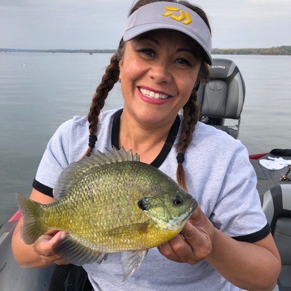 Panfish / BluegillTechniqueVertical Jigging Mid Depth (10-19')SeasonFallStructurePointsIt's not uncommon here to bring your ice rod and spot lock in 11-12 ft to vertical jig with tungsten jigs tipped with eurolarvae or small pieces of crawler and catch 100 perch/bluegills in a 5-6 hour setting. Schools keep coming through with consistent action and most of the perch were in the 9-10" range and bluegills 8-9" with some occasional big 10"rs! Of course, regular panfish rods work just fine, however we found we were getting right back down to the action quicker with this method and catching more fish than the other boats around us. We dropped down to the bottom and only reeled up once until later in the day we noticed the bigger marks were higher in the water column so we reeled up further. If you are panfishing fanatic, this lake will not disappoint!