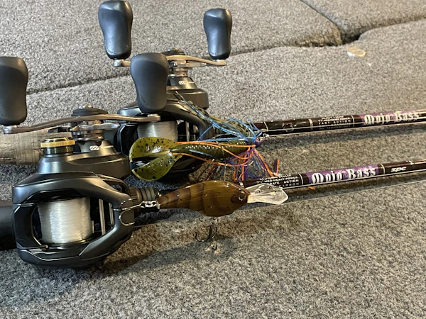 Largemouth BassTechniqueMedium Diving Crankbaits (7'-12')SeasonSpring (Pre-Spawn)StructurePointsThe ice has been off for a few days now and water temps this morning started off in the mid 40's. I targeted steeper transitions near flats in 6-8 feet of water. Fish were grouped up on spots that had a mixture of chunk rock and wood cover. I started off throwing a Bomber Fat Free shad in a color I call Fried Green Tomato and then moved to a Spro RKCrawler in a green ghost craw pattern. My setup was a Shimano Curado 201K in 7.4:1 spooled with 10 pound Seaguar Red Label on a St croix Mojo Glass 6'10 Medium cranking rod. I ended the day with some nice fish including two over 5 pounds.