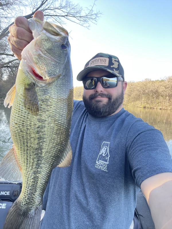 Largemouth BassTechniqueStructure JigsSeasonSpring (Pre-Spawn)StructureLaydownsCaught all my fish off wood. Water was somewhat cloudy and that’s where I got most of my bites opposed to the clean water. I was pitching a homemade 1/2 ounce jig similar to the Matt Herrera flipping jig in a blue craw color and a Bojangles Z-Daddy trailer in blue craw. I’ve been using the new Mastiff flourocarbon from Shimano now for a few weeks and this trip I really put it through its paces. I was fishing in and around some fairly heavy laydowns. I did not notice any nicks or abrasions and only had to retire once out of habit. Normally in this situation I would be using at least 20 pound test. I however did not feel under powered with the 18 Mastiff.