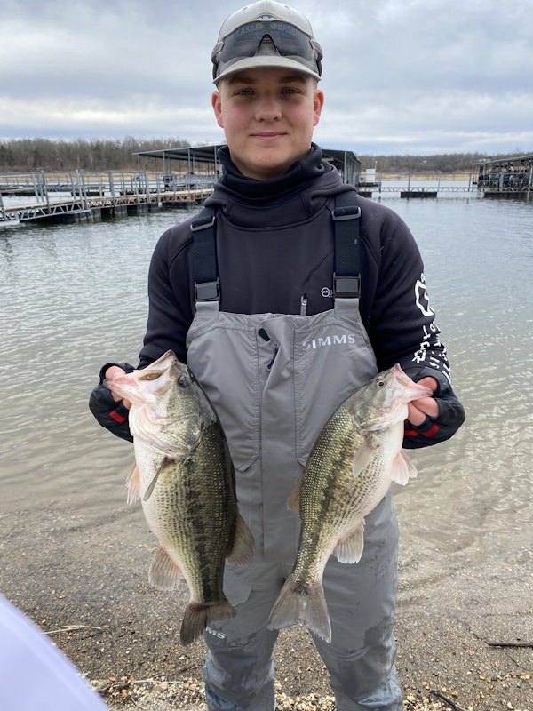 Largemouth BassTechniqueUmbrella RigsSeasonWinterStructureBaitfishIt was a tuff day out on bull shoals. Fished a joe bass tournament out of buck creek. We caught all our fish on a rigs in about 15 to 20 feet of water. Did catch one in 30. Biggest one was about 4 pounds. We fished in the backs of pockets and brush piles. We saw a lot of dead shad in the water and saw a lot of big balls of shad in the backs of pockets.overall it was a tuff day on the water but still fun