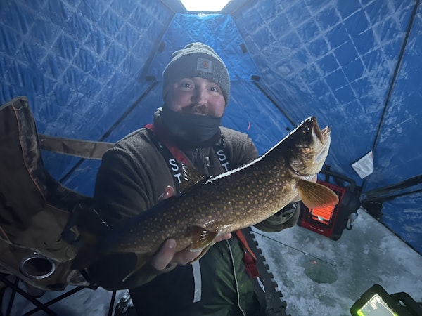 Lake TroutTechniqueSpoonsSeasonWinterStructurePointsLarger baits couldn’t seal the deal despite marking lots of fish, so downsizing to a smaller spoon tipped with a medium minnow was the ticket.