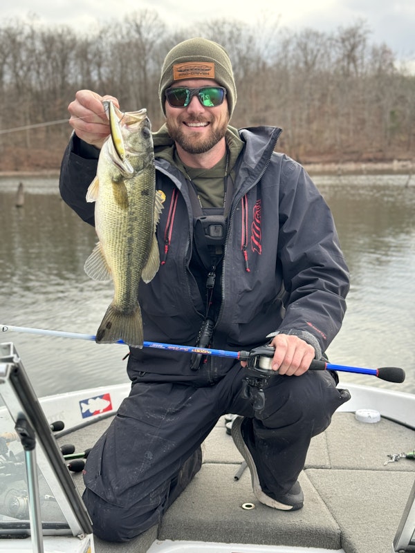 Largemouth BassTechniqueHard JerkbaitsSeasonWinterStructureLedgesIt was a nice warm front on that particular day. Air temps were mid-50s and the water temp went from high-40s to low-50s. Lot of crappie anglers out scoping every single brush pile or deep hole in the lake. We ended up fishing concrete bridge pilings with an A-Rig, flopping a trap off the bottom of deep holes, yo-yo blade baits, and throwing jerkbaits for suspended fish near drop offs. The deeper diving ones were better and the stunna being a slow sink worked well. Just the day or two before someone caught a 40+ musky on a jerkbait. Most predominant techniques were blade baits and jerkbaits on twitches and not herbs. There were still schools of baitfish roaming.