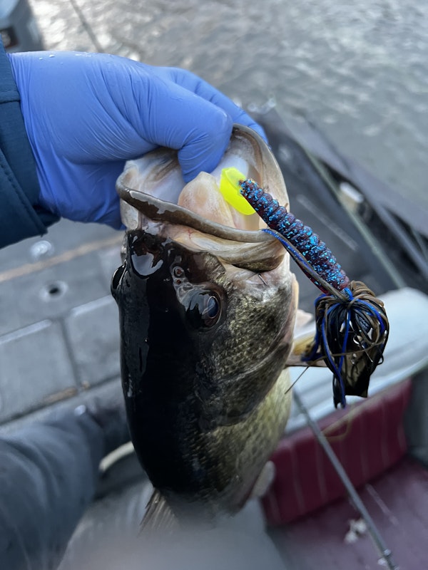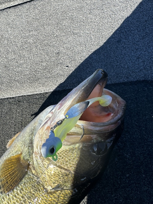 Largemouth BassTechniqueBladed JigsSeasonSpring (Pre-Spawn)StructureLaydownsThe big blade Zman has a much different vibration but the vibration attracted this 3lbs large mouth bass. I need to restock some more!