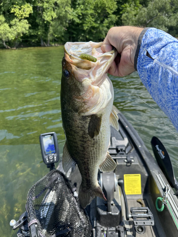 Largemouth BassTechniqueTexas Rigs (Pitch/Flip)SeasonSpring (Post-Spawn)StructureRiver ChannelsBass were at the mouth of creek channels. Texas rig and drop shot