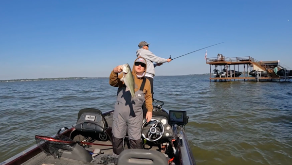 Largemouth BassTechniqueTexas Rigs (Pitch/Flip)SeasonSpring (Pre-Spawn)StructureDocksI fished the lake on 04/02/22 for the first Bass Champs TX North Region tournament. We targeted docks and rocky sea walls along main lake banks at the mouths of spawning coves in 2-6 feet of water, starting early with a chatterbait and then transitioning to throwing a Texas Rig when the sun got up. The water temperature that day ranged from 58 to 65 degrees, the the clarity across the lake was about 8 inches to a foot of visibility. There was sunny skies and a mild south wind, with outside temperatures starting in the mid 50's and warming to the mid 70's by the end of the day. We were able to catch a limit weighing 16.90 pounds which was good enough for 21st place out of the 237 teams competing and a small check. The lake is fishing really good right now, so get out there!