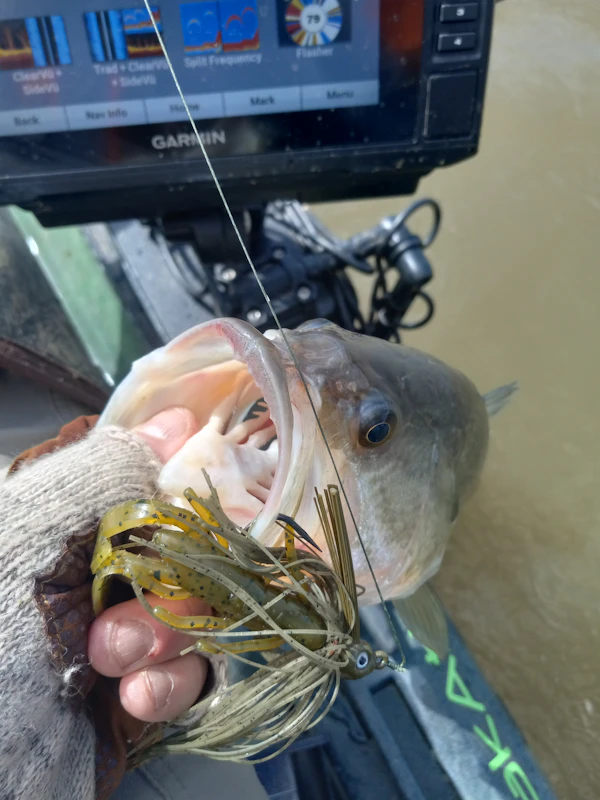 Largemouth BassTechniqueSwim JigsSeasonSpring (Pre-Spawn)StructureLaydownsSlow rolling sleeper gill on bottom and dragging and hopping a jig around hard cover around fresh grass.