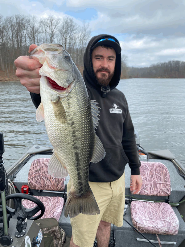 Largemouth BassTechniqueBladed JigsSeasonSpring (Pre-Spawn)StructureSubmerged VegetationFishing secondary points 5 to 15 feet deep. Grass edges. Slow winding the jackhammer near the bottom.