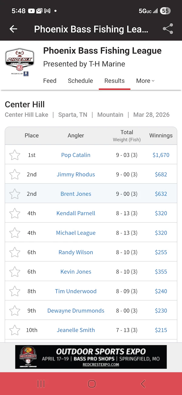 Largemouth BassTechniqueSpinnerbaitsSeasonSpring (Pre-Spawn)StructureLedgesMLF BFL 2nd place. Caught largest bass, a 3 1/2 lb largemouth, on a windy bank in the sun. The wind was 10-15. Caught another keeper on a Neko rig with a Senko, Green-pumkin in the very back of a pocket on a bed.Last keeper was caught in a protect pocket , bluff wall on a 4in Zoom finesse worm on a shaky-head.