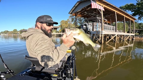 First cool morning of fall and the fish were chewing! Throwing the slobberknocker near any hard cover like lay downs, brush piles, or docks would generate a bite almost every time. The key was to be as close as possible to that piece of cover with your lure because they were holding tight to it.