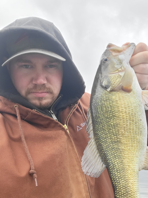 Smallmouth BassTechniqueDamiki RigSeasonWinterStructureRock PileWater temp ranging 46 mid lake to 43 towards the dam. Found fish on wood in 12-15ft mid lake on brush piles and 15-20 on rock piles on the lower end of the lake.