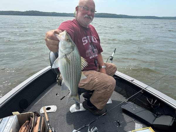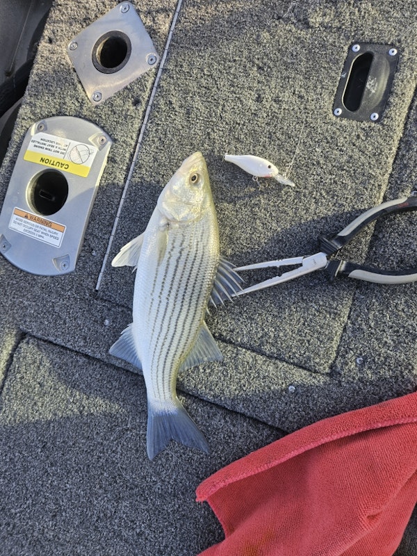 White BassTechniqueTrolling Mid Depth (10-19')SeasonWinterStructureHumpsCovered a ton of water looking for fish. Everything was spread out and trolling seemed like a good option as the water had cooled of quite a bit in the last week. Didn't get a single bite from 7Am until about 3 PM, then I was able to get 3 whites in the 1-4 pound family on a Bone colored Flicker Shad (shown)