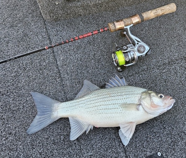White BassTechniqueVertical Jigging Deep (20'+)SeasonWinterStructureLedgesHad to try January open water fishing. I figured it would be slow but was pleasantly surprised by a 1/2 dozen of these 2 pounders. No boat battling when water and air temps are below 40:-)