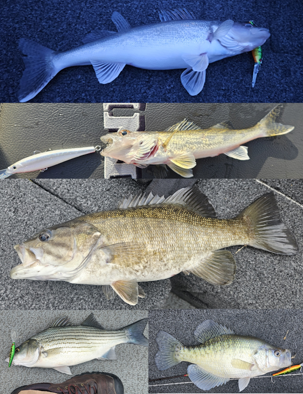 WalleyeTechniqueTrolling Mid Depth (10-19')SeasonSpring (Pre-Spawn)StructureDamas of the end of March walleye have still not copleted the spawn season. A few males caught had milt actively spewing. Bite was not great but nice activity with a few bonus crappie, white bass and even a smallmouth shows that the fish are actively using the new warm water heated by rocks and wind at the dam. #9Berkley Flicker Minnnow was an ambitious target for a young walleye in 2nd pic.