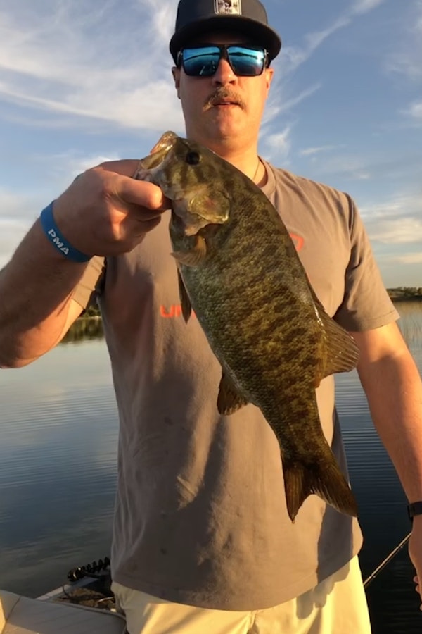 Largemouth BassTechniqueTexas Rigs (Worming)SeasonFallStructureReedsHot day but overnight cold temps have been driving fish shallow. Found this one on the outer edge of a reed stand at last light just about as we were going to come in for the night.