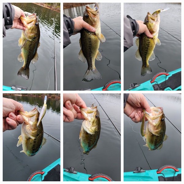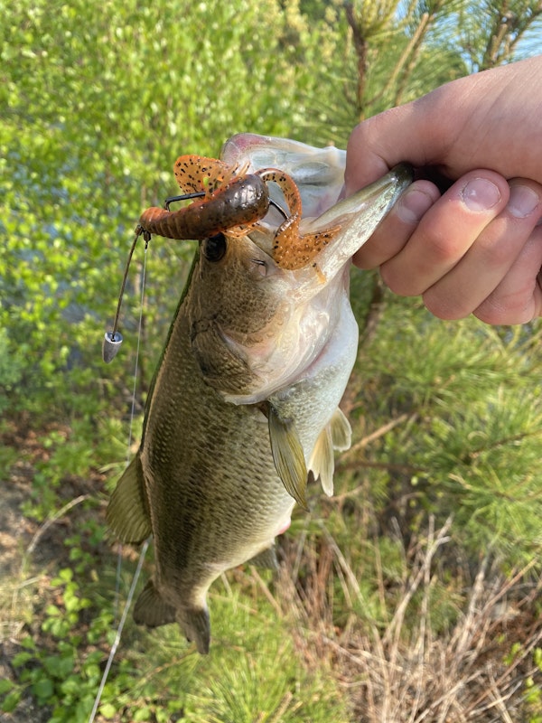 Largemouth BassTechniqueSoft Body Swimbaits (Small/Medium)SeasonSpring (Pre-Spawn)StructurePointsLong bass on the swimbait