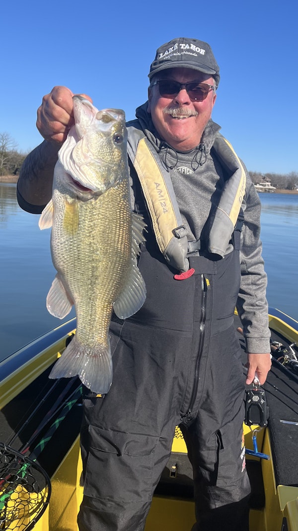 Largemouth BassTechniqueFootball JigsSeasonWinterStructureRip RapBluebird skies after 2 ft lake rise from rain. Fishing was slow, but caught a few on rip rap with jig & crankbaits