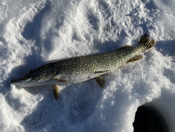 Northern PikeTechniqueIce Fishing Tip-UpsSeasonIceStructureLedgesCaught this Pike on a tip up. #4 hook and a minnow does the trick. Target ledges and places that fish can relate to while fishing on ice. The recommended jigs should help anyone get started ice fishing!