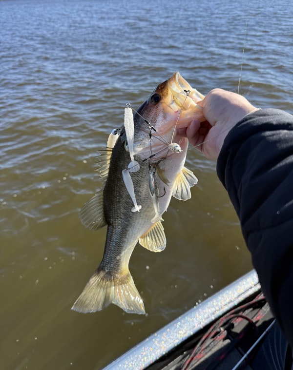 Largemouth BassTechniqueUmbrella RigsSeasonSpring (Pre-Spawn)StructureBaitfishSaw some balls of shad and bass schooling around them. Threw the A-rig at the bass and instantly hooked up. Caught 7 till the bite died.