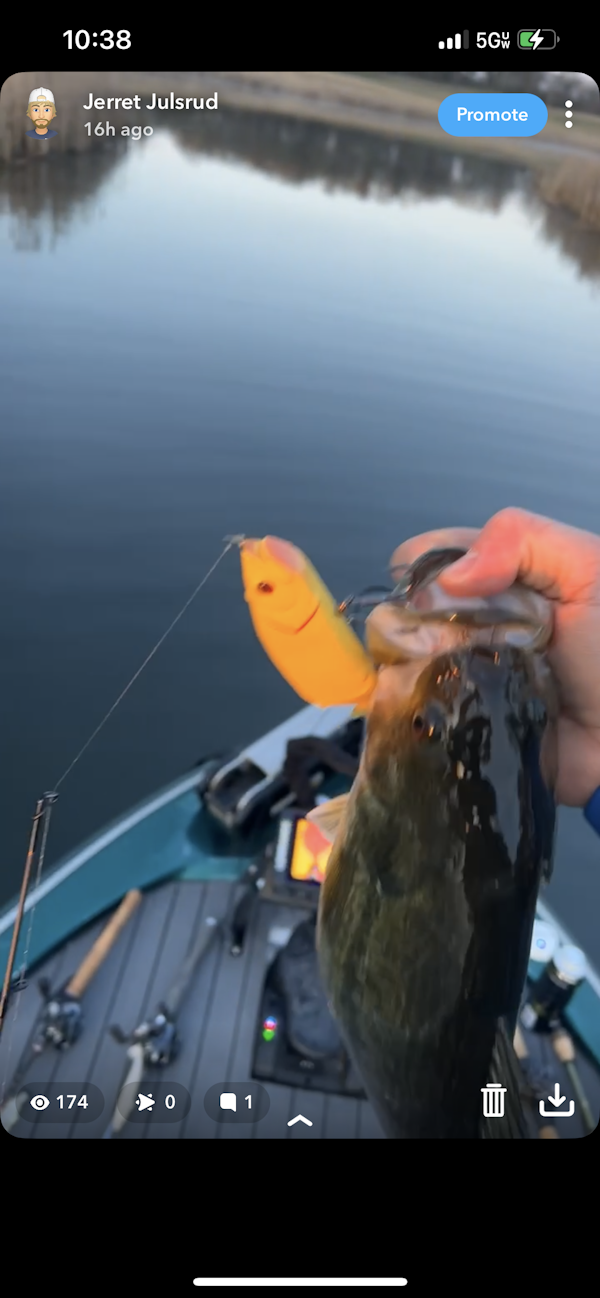 WalleyeTechniqueSoft Body Swimbaits (Small/Medium)SeasonSpring (Post-Spawn)StructureSubmerged VegetationSnap jigging the buck tail and flukes on 1/4oz heads in 4-7 FOW along with slow rolling the Keitech produced 3 limits. Finding green grass was a real plus, but the fish were up eating in the wind.