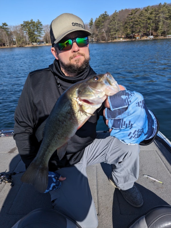 Largemouth BassTechniqueHard JerkbaitsSeasonSpring (Pre-Spawn)StructureSubmerged VegetationCaught quite a lot of numbers today but nothing really for size. Water was still cold at 47°. Sunny and breezy. We found the slightest amount of submerged vegetation just coming up on the bottom in about 10' of water and these little guys were stacked up in there. They would only hit on a long pause with the jerkbait.