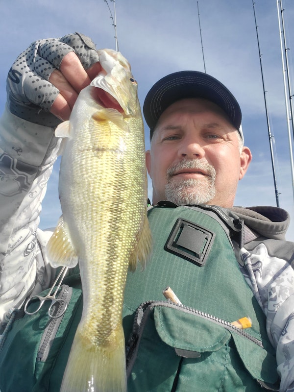 Spotted BassTechniqueDrop ShotSeasonWinterStructureBouldersLske is filling up fast, wster temp at 54.0 degrees.