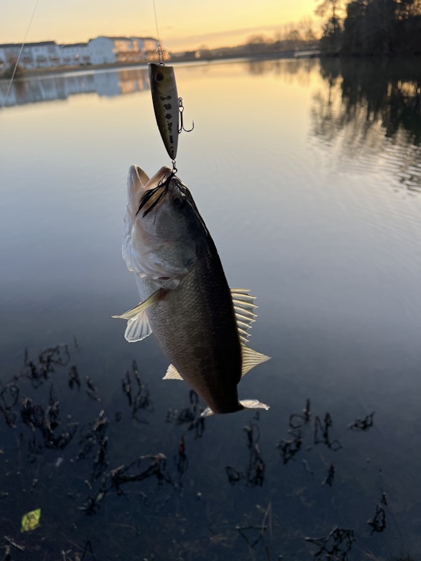 Largemouth BassTechniqueHard Topwater (Popping)SeasonWinterStructureLaydownsGreat morning by the water. They were slamming the top water popper and were destroying a spinnerbait.