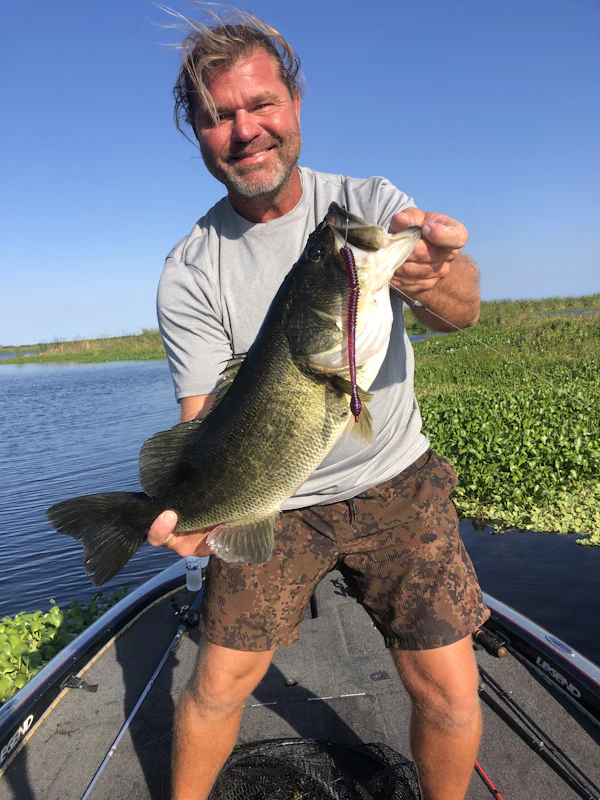 Largemouth BassTechniqueTexas Rigs (Worming)SeasonSpring (Post-Spawn)StructureSubmerged VegetationTexas rig swamp swimmer in plum color is killing em right now shallow. Clean edge next to resident hyacinth mats is key.