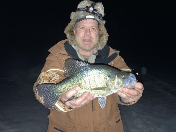 CrappieTechniqueIce Fishing SpoonsSeasonIceStructureOpen Water/BasinUse your Electronics to locate the basin fish. I was using my Garmin Live to locate the fish but a flasher will work just as good. Look for soft bottom as the fish are eating bugs. Fish just above the fish and try a cat and mouse approach, by using the keep away, just keep pulling it up and make them follow. I like to use braid with a short piece of mono with a small swivel attaching them or by tying the braid to the mono. If you are fishing at night make sure to use a glow light to charge the jigs. Tip the middle treble with a waxy or a minnow head. Hold the spoon and always put the bait on the back side of the spoon in the middle.