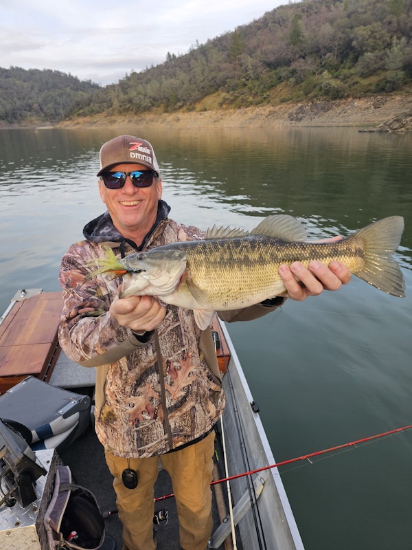 Spotted BassTechniqueStructure JigsSeasonWinterStructureLedgesFull disclosure...I only had 4 hours in the morning cuz I wanted to get back in time for NFL playoffs, so my intent was to troll for some Rainbow or Kings...but after 3 hours of dragging lures and no results, I had to go bass fishing with the time I had left. I found a 100 foot long submerged ledge by the levy that was about 3 feet under water at the top and down to 8-10 feet on the drop off. Tied on the Strike King Casting Jig with a Ned Craw trailer. I set up about 25 feet away and cast to the ledge, popping my jig off the bottom back at me. This was the best of the day. 2 lb 4 oz. and my first bass for 2024. Here's to many, many more for us all!!!!