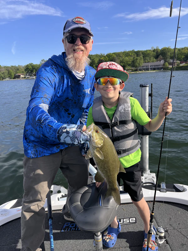 Smallmouth BassTechniqueWacky RigsSeasonSpring (Spawn)StructureRock PileSince the morning trip was targeting Largies and the sun was high I made a move to find some smallies since this boy had never caught one. We went over some rock piles in 12 feet of water and found some. The afternoon bite as great.