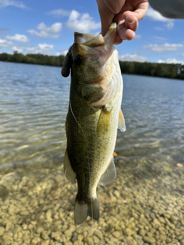 Largemouth BassTechniqueSoft Body Swimbaits (Small/Medium)SeasonSummerStructureLedgesCaught multiple bass along concession stand to first curve on lake near dusk. This bass in picture was caught on the point of the lake on the southern end near the drop off on that side. Was the biggest of the day On that day the preferred colors the imitated the bluegill. Only had one bass hit a bright orange swim bait. And that was near where the kayaks would launch.