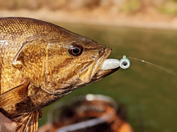 Smallmouth BassTechniqueSoft JerkbaitsSeasonSpring (Spawn)StructureSubmerged VegetationWorked fluke higher up in water column over top of a weed bed adjacent to a small point. Bite came right at dusk, twitch 2-3 times with a 1-2 second pause, bite came on the pause. I like to use a higher visual braid to fluro leader to help see when a fish picks up the fluke on a pause, especially in lower light conditions.